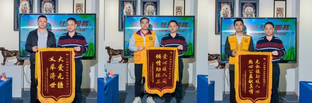 会上,谢洪祥队长、龙志和会长向环卫工人们致以节日的问候,并送上暖心的慰问。利伟强对本次活动的开展给予了高度赞扬,并向和爱服务队、鹤龙街商会、莲德卓越服务队颁发了感谢锦旗。环卫工人代表越汉明动情的发言:“这份工作虽然辛苦,但看到城市在我们手中变得干净整洁,心里特别踏实。感谢社会各界十年如一日的记挂,这份尊重和理解,比什么都珍贵。”朴实的话语道出了环卫群体的心声,也引发了在场所有人的共鸣。