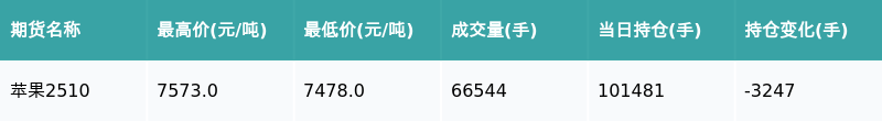 南财智讯6月11日电,南财金融终端盘后期货数据显示汇金财富,郑州商品交易所的苹果主力合约收涨0.39%,收盘报7551.0元/吨,日内资金流出4317.14万元。其他相关指标见下表: